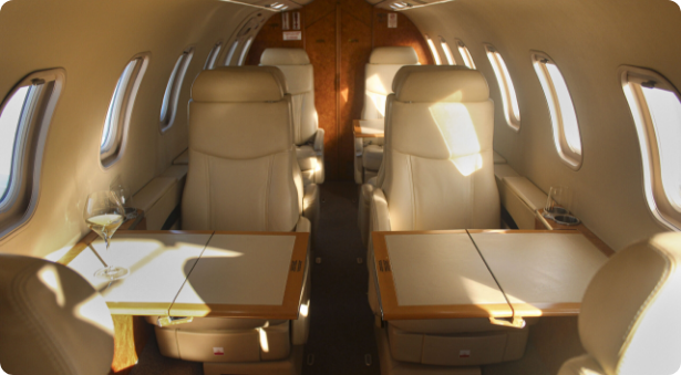 Aboard our Learjet 45, every detail is managed by a dedicated team. The cabin features ergonomic seating perfectly sculpted for relaxation and productivity on short and medium-haul flights. A highly trained crew committed to providing premium service, and catering tailored to your needs, ensures your flight is not just a journey, but a refined extension of your executive life.